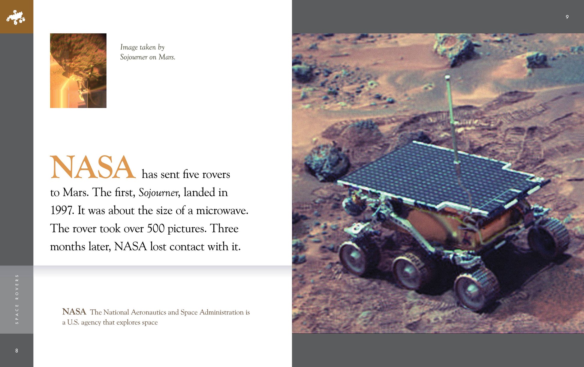 ¿Qué es esa máquina robótica que conduce en la Luna? ¡Es un vehículo espacial! Con la ayuda de imágenes vibrantes y textos STEM de nivel elemental, este título de astronomía de no ficción para niños examina la historia de los vehículos espaciales y cómo se utilizan los vehículos para explorar y recolectar muestras de las superficies de lunas, planetas y otros cuerpos celestes. Un artículo de ciencia espacial destaca un rover de la NASA apodado Percy y la investigación que realizó en Marte. Los subtítulos, las definiciones en la página, los recursos adicionales y un índice ayudan a los lectores de segundo grado en adelante.