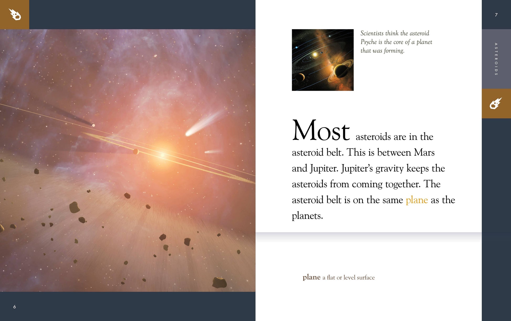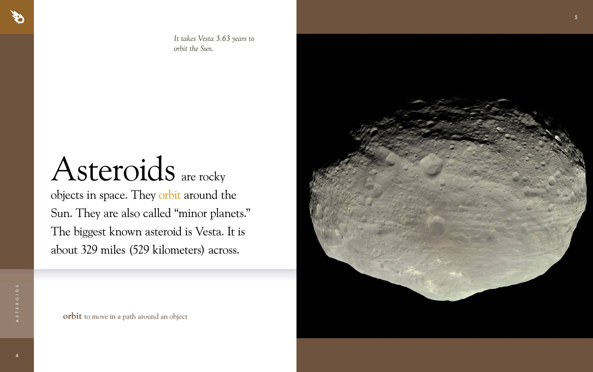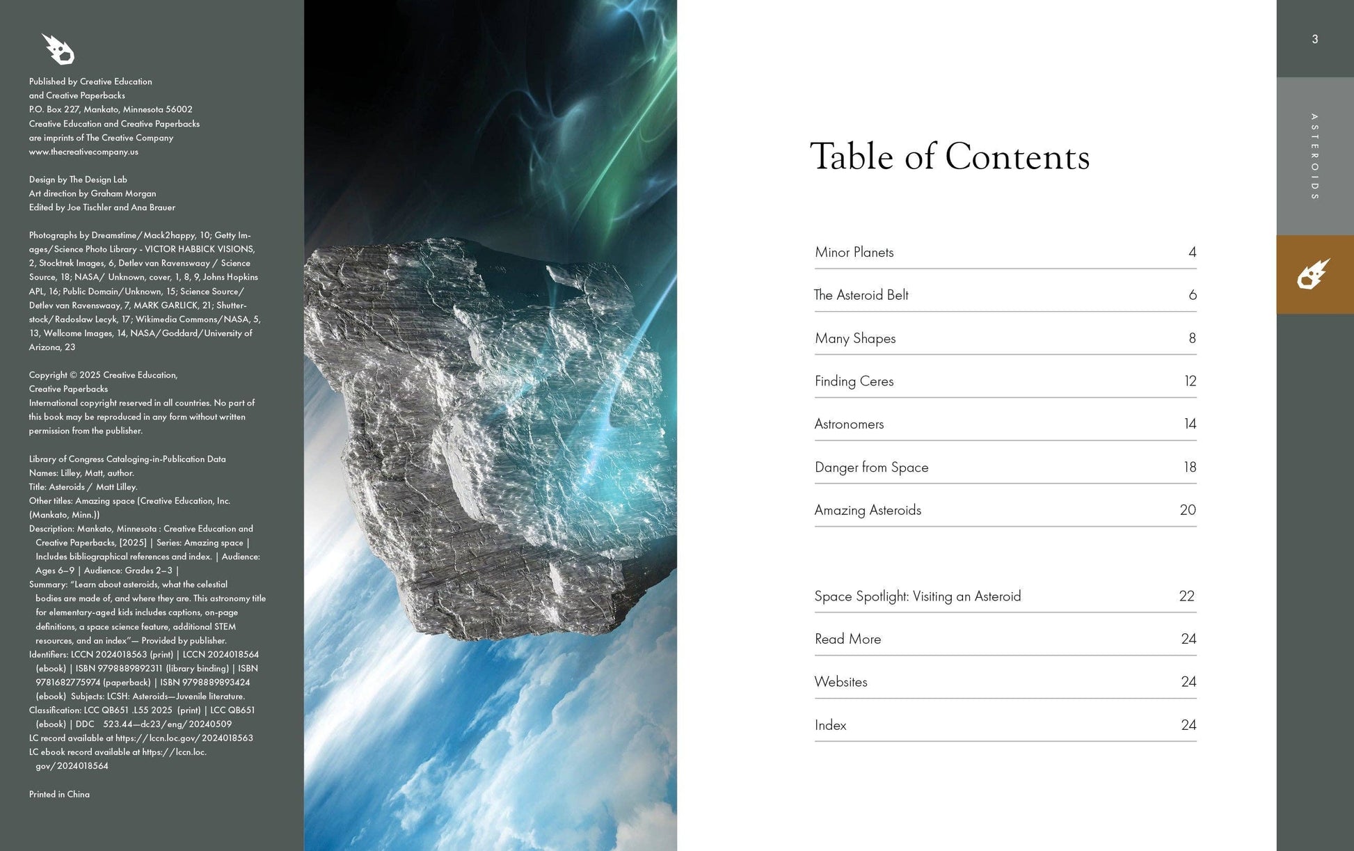地球の大気圏をはるかに超え、星や月、惑星を越えて飛んでいるあの岩石の物体は何でしょうか?小惑星という天体です!この子供向けノンフィクション天文タイトルでは、鮮やかな画像と事実に基づいた初級レベルの STEM テキストを使用して、小惑星の年齢、構成、形成、位置を調査します。また、歴史上の重要な発見についても探求します。宇宙科学特集では、NASA 探査機による小惑星訪問にスポットライトを当てています。キャプション、ページ上の定義、追加リソース、索引は、2 年生以上の読者をサポートします。