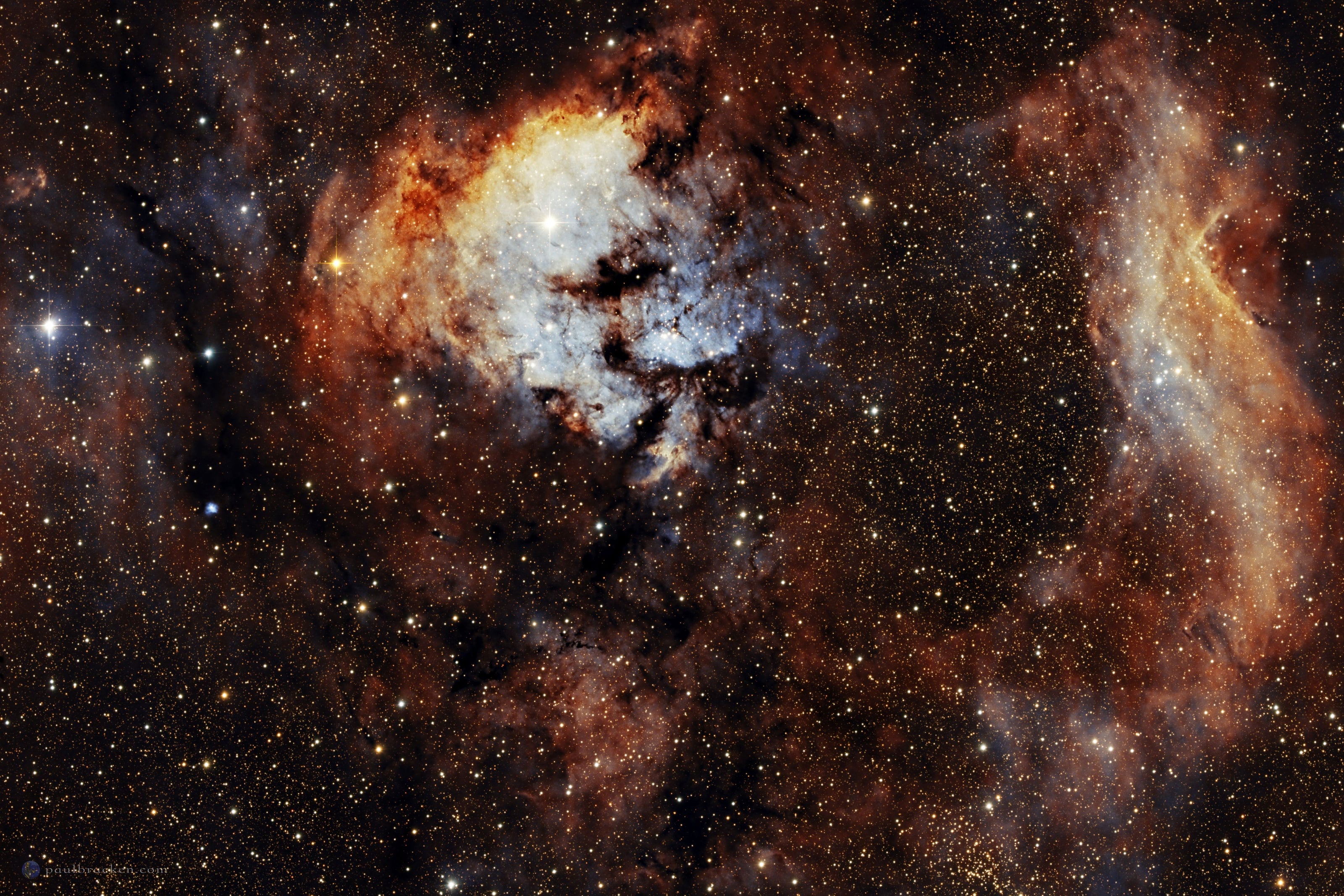 It is likely there is some intense star formation happening in those bright tangled areas, but also a lot of gaseous material being blown away by strong stellar winds. As nebulae go, this one's pretty large; at about 150 light years across, and almost 3,000 light years distant, it takes up the full frame of the sensor. Whatever way you look at it, this is truly an interesting and happening scene.