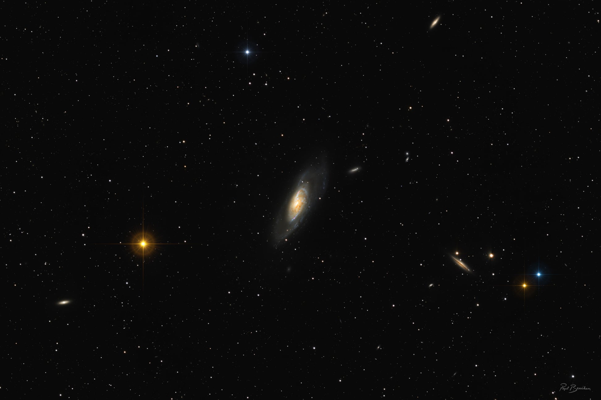 This galaxy has an active core, with a supermassive black hole at the center. It's larger than our galaxy, about 150,000 light years across.