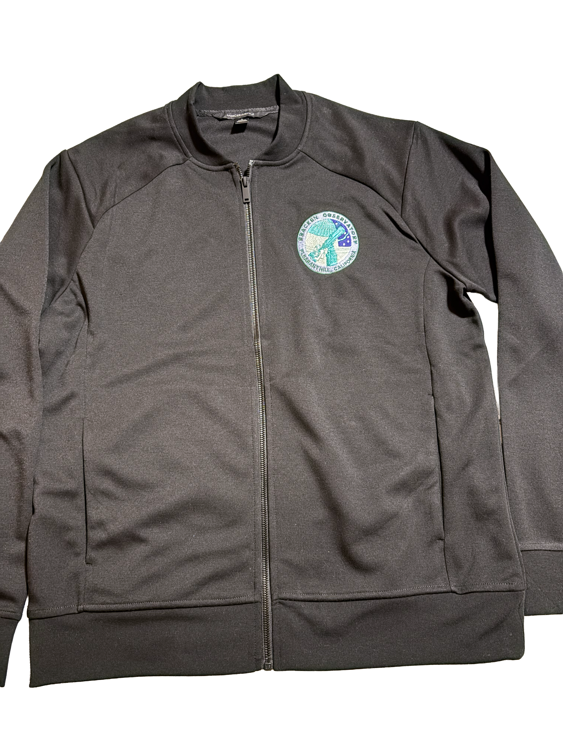 • This Mercer+Mettle® double-knit bomber fleece in deep black features a finely embroidered observatory logo, blending classic style with precise craftsmanship.